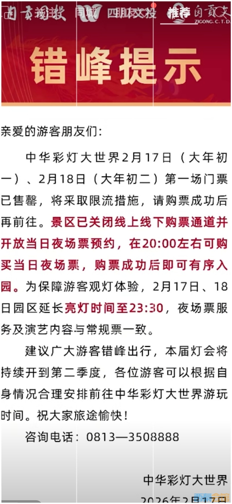 自贡·中华彩灯大世界(大年初二至初四)错峄提示