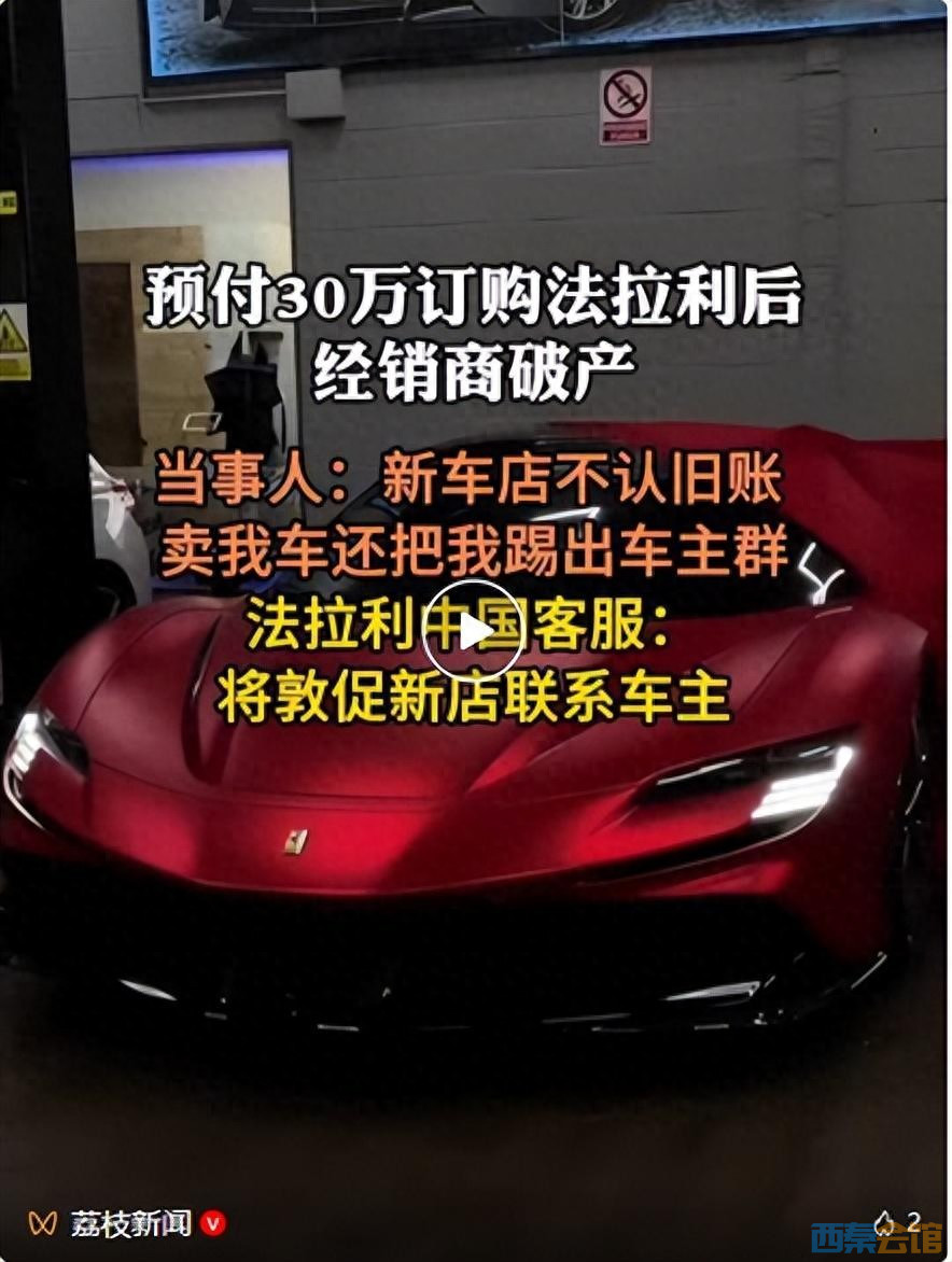 预付30万元订购法拉利后经销商破产,当事人:新车店不认旧账,..