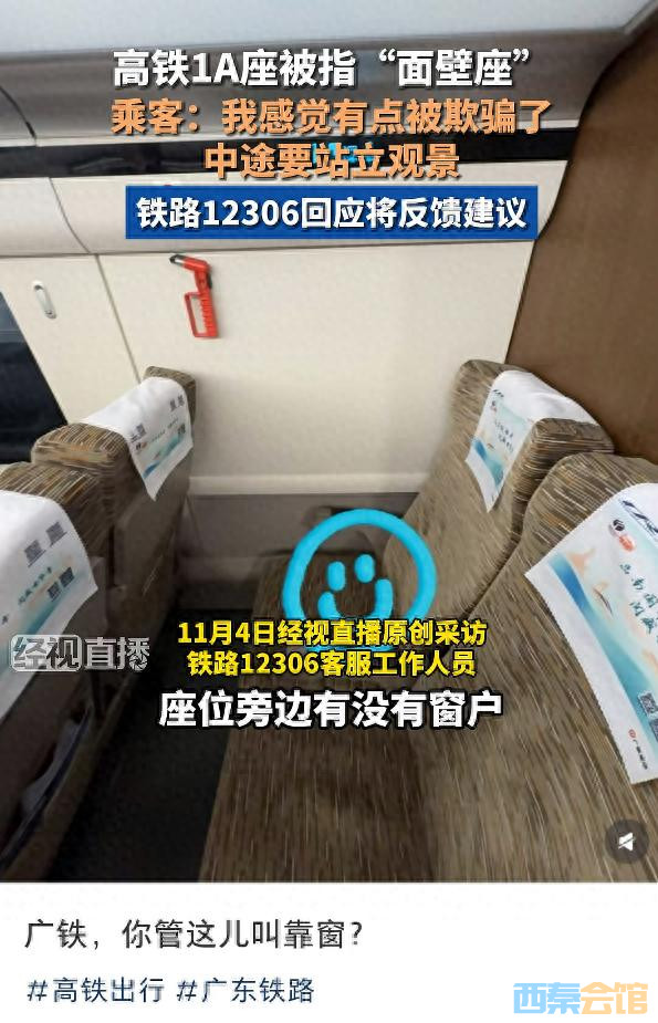 网友买高铁靠窗座位却遇“面壁座”,12306:“靠窗”意为靠..