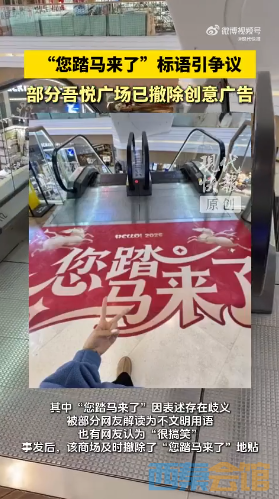 南京一商场标语“您踏马来了”引争议,商场回应:已撤除