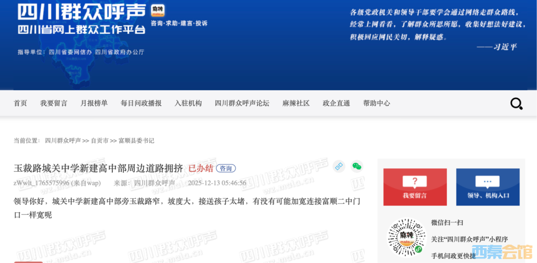 接送孩子太堵!富顺这里坡度大 + 道路窄!官方回复来了.....