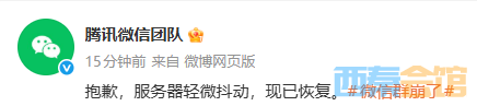 微信群崩了?腾讯:服务器轻微抖动,现已恢复