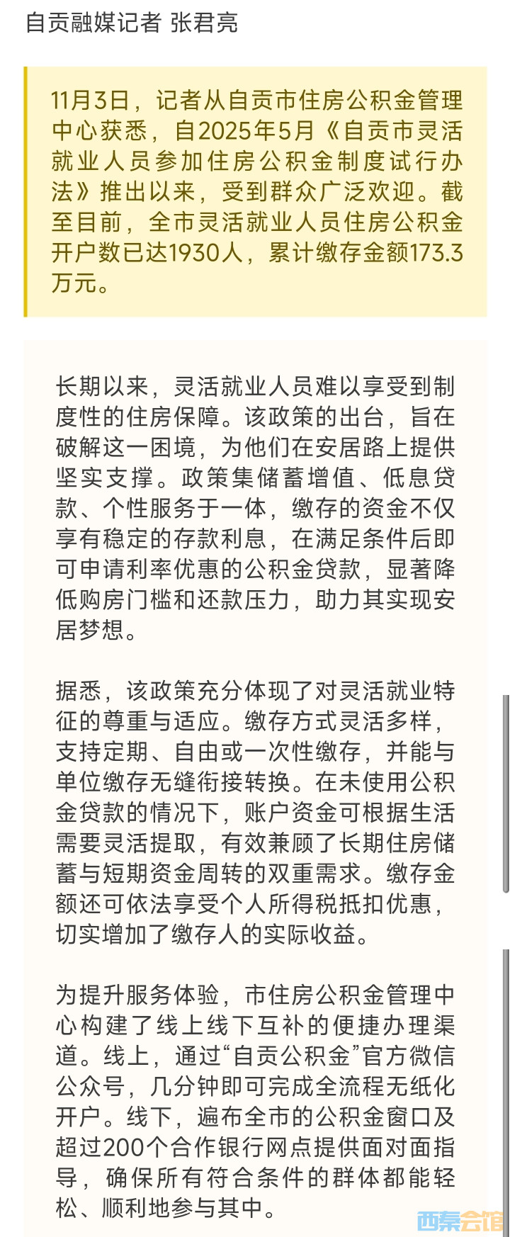 自贡灵活就业人员住房公积金落地政策见效 开户人数大1930人..