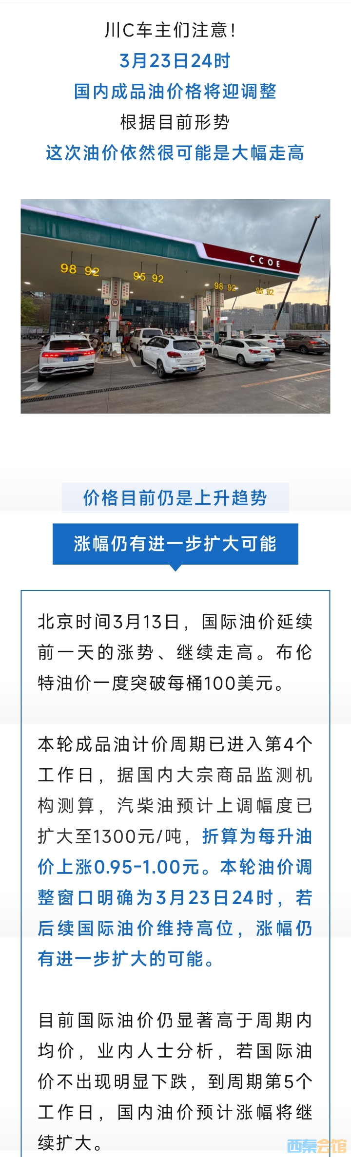 川C车主注意!油价或将大涨
