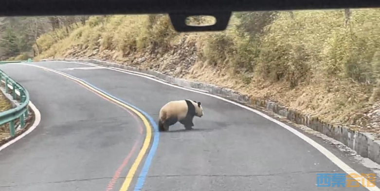 游客在雅安一景区偶遇野生大熊猫穿越公路,低头钻栏杆仿佛“秀身..