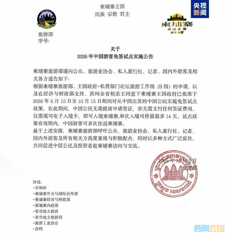 柬埔寨明年将对中国公民试行免签政策
