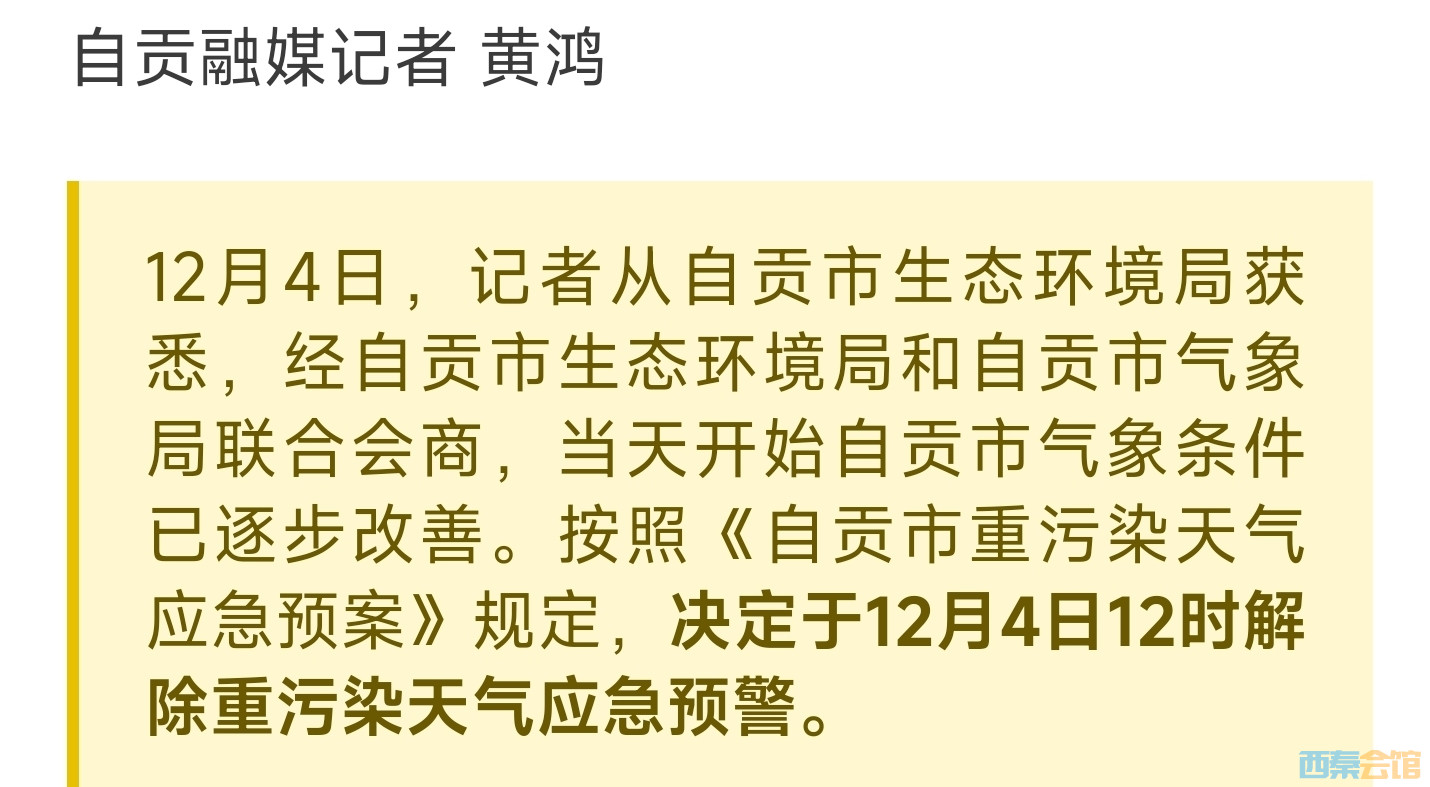 自贡今日解除重污染天气应急预警