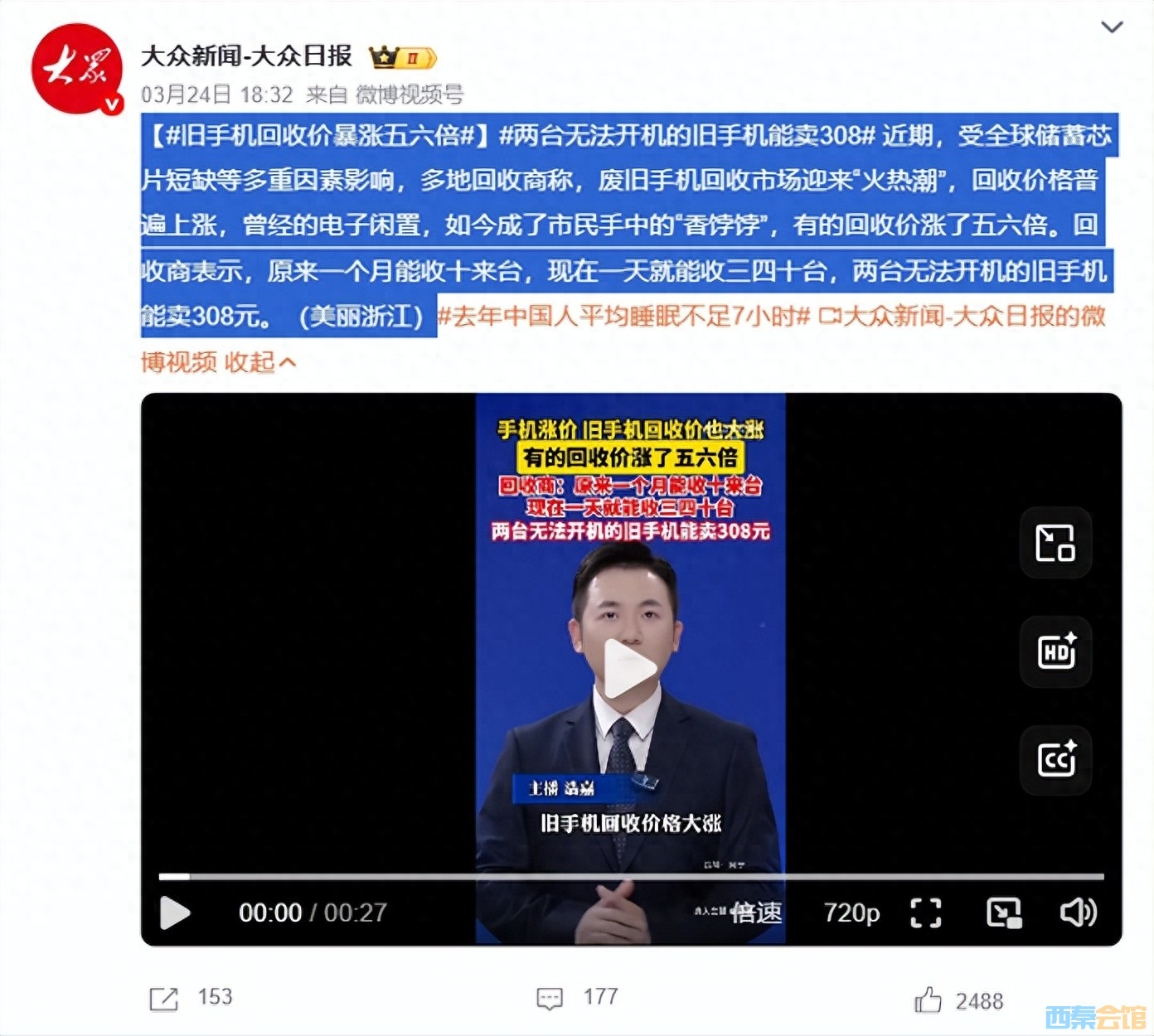 旧手机回收价暴涨五六倍,两台无法开机的旧手机能卖308