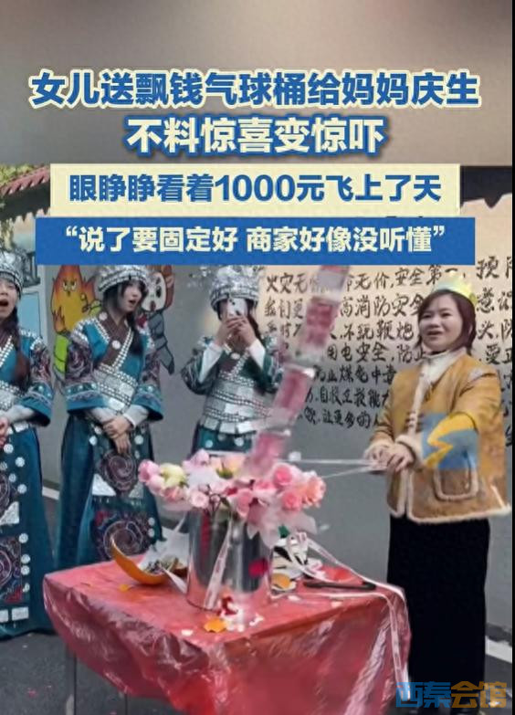 四川一女子送“飘钱气球桶”给母亲庆生,不料眼睁睁看着1000..