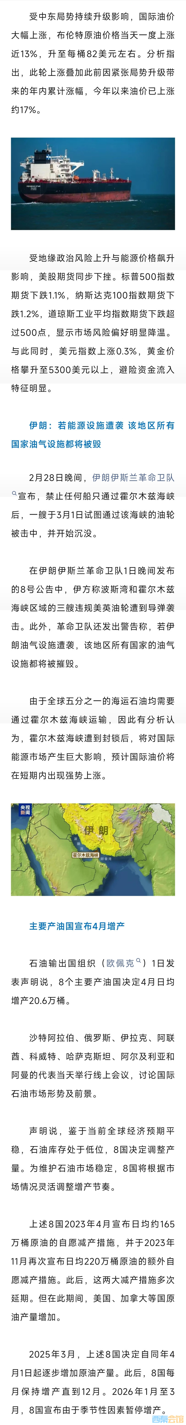 受中东局势影响 国际油价大幅上涨