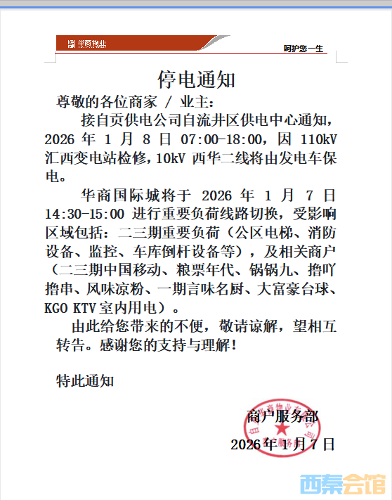 @自贡人 停电通知
