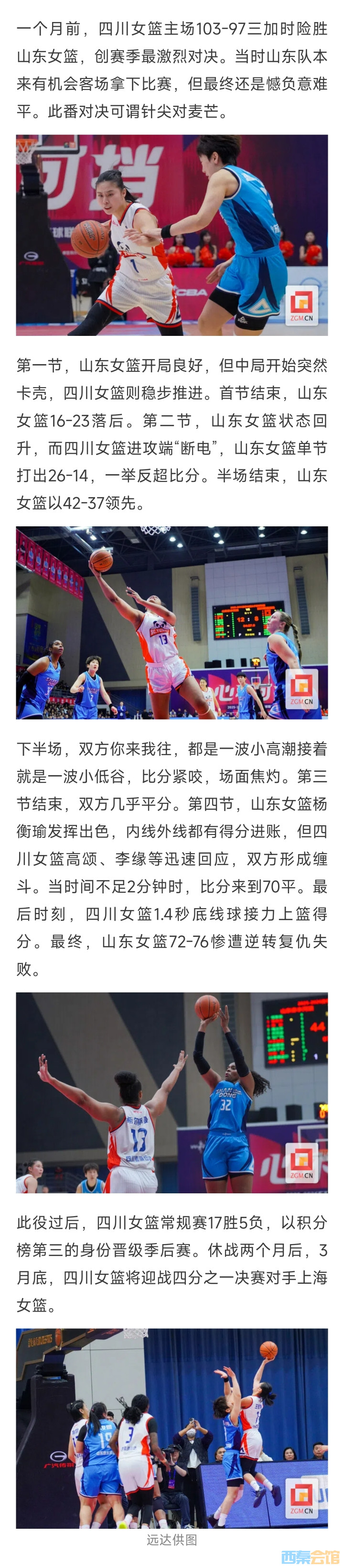 常规赛最后一战 四川女篮76-72逆转战胜山东女篮