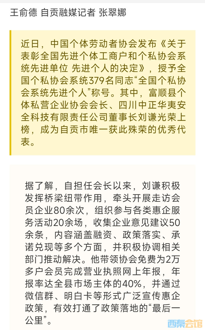 自贡唯一!刘谦荣获“全国个私协会系统先进个人”称号