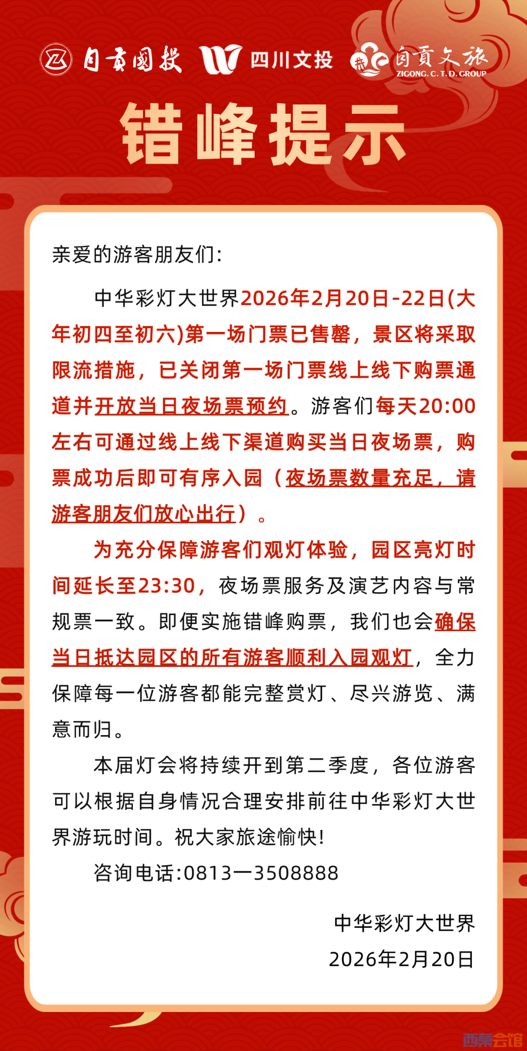 最新!自贡·中华彩灯大世界错峰提示