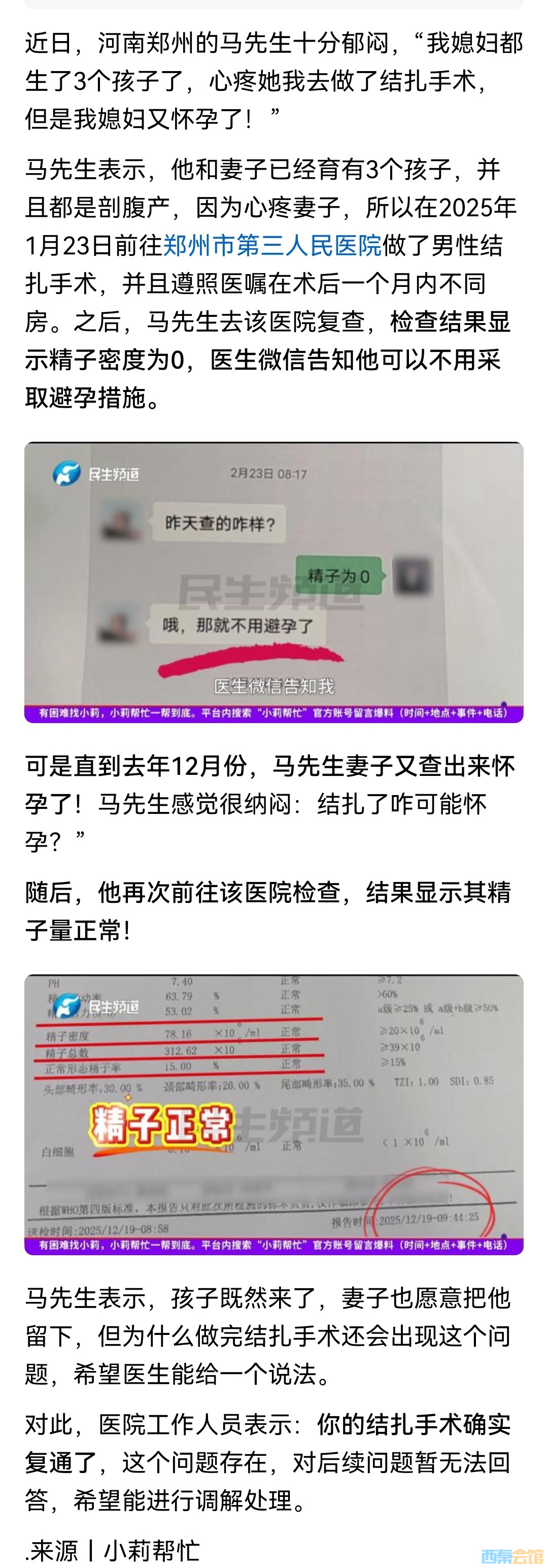 男子心疼妻子已生3娃,主动结扎后妻子又怀孕,医院回应