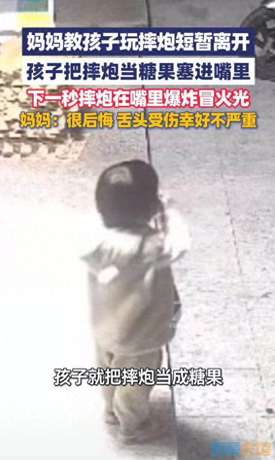 妈妈教孩子玩摔炮,短暂离开,孩子把摔炮当糖果塞进嘴里,下一秒..