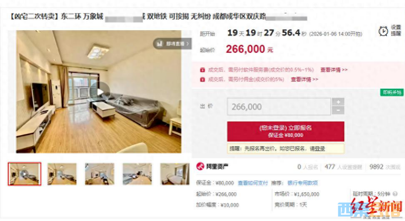 105.6万元被拍下后,成都一“凶宅”二次转卖,下月26.6..