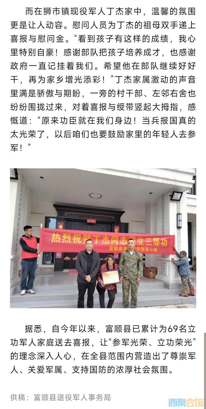 喜报送家门 尊崇暖人心——富顺县共绘强军兴军新图景