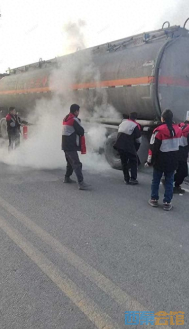 油罐车起火路人心悬 八名快递小哥挺身扑救化险为夷获消防部门点..