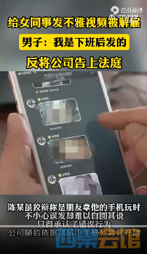 给女同事发不雅“小视频”被开除,男子:我是下班后发的!反将公..