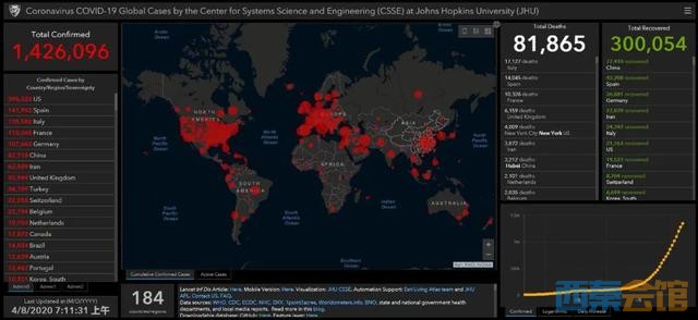 美国约翰斯·霍普金斯大学发布的新冠疫情最新统计数据显示,截止到北京时间8日7时11分,全球确诊新冠肺炎1426096例,死亡81865例,累计治愈3000054例。
