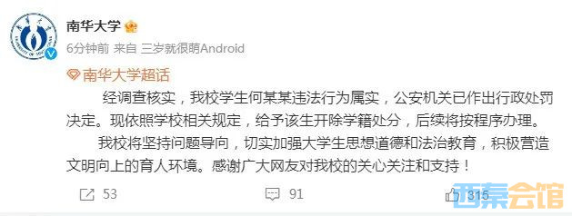近日,网传南华大学一男生造女同学黄谣,P女同学不雅图片牟利。21日,南华大学微博发布声明回应此事: