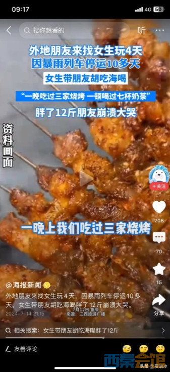 甘肃的朋友来重庆找女生玩四天,结果暴雨火车停运,又玩了十几天,这期间她们每天下馆子,一天最多三顿烧烤,7杯奶茶…