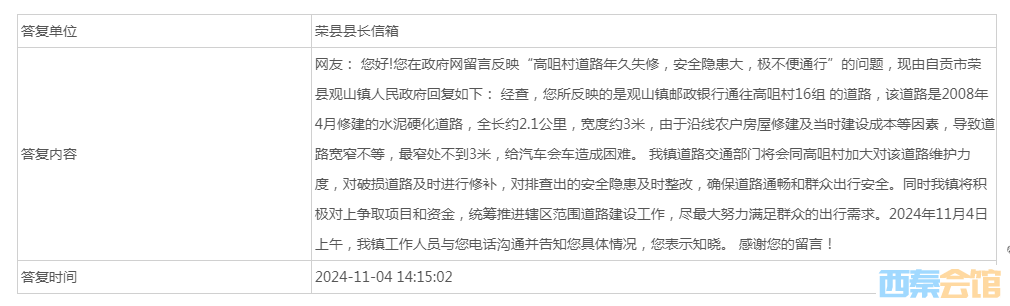 对于网友提出的问题荣县观山镇人民政府也做出了相关回复
