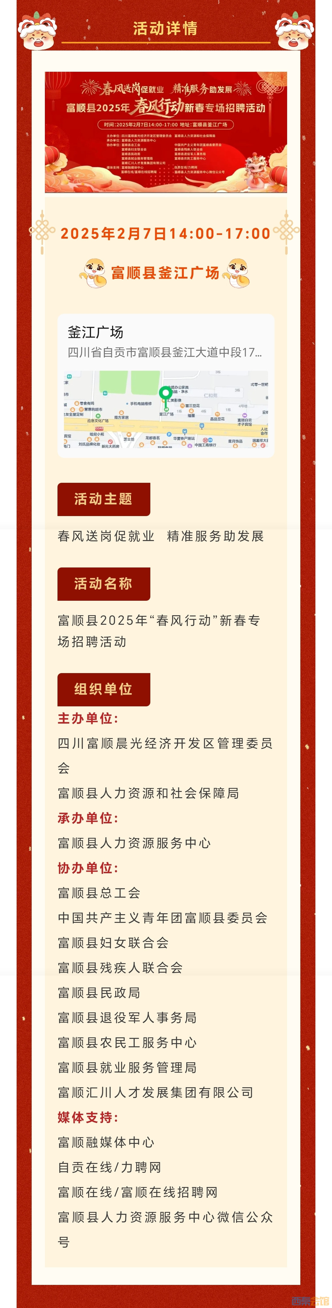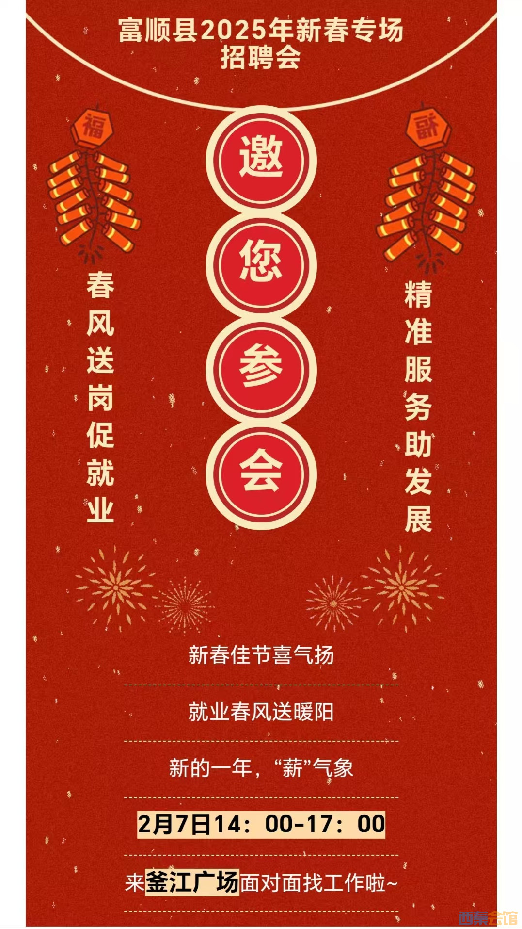 2月7日,富顺县2025年“春风行动”新春专场招聘活动邀您参会啦~点击查看!