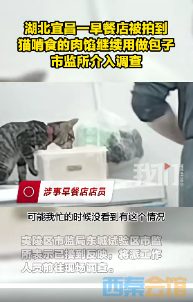 近日,有网友发布视频称,湖北宜昌夷陵区一餐饮店用猫啃食过的肉馅制作包子。视频画面显示,一只猫爬上店内桌子,疑似在啃食用于制作包子的肉馅,随后店员将装有肉馅的容器移开,事件引发关注。
