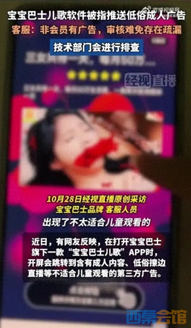 儿歌APP被指推送低俗成人广告,宝宝巴士道歉:系第三方平台接..