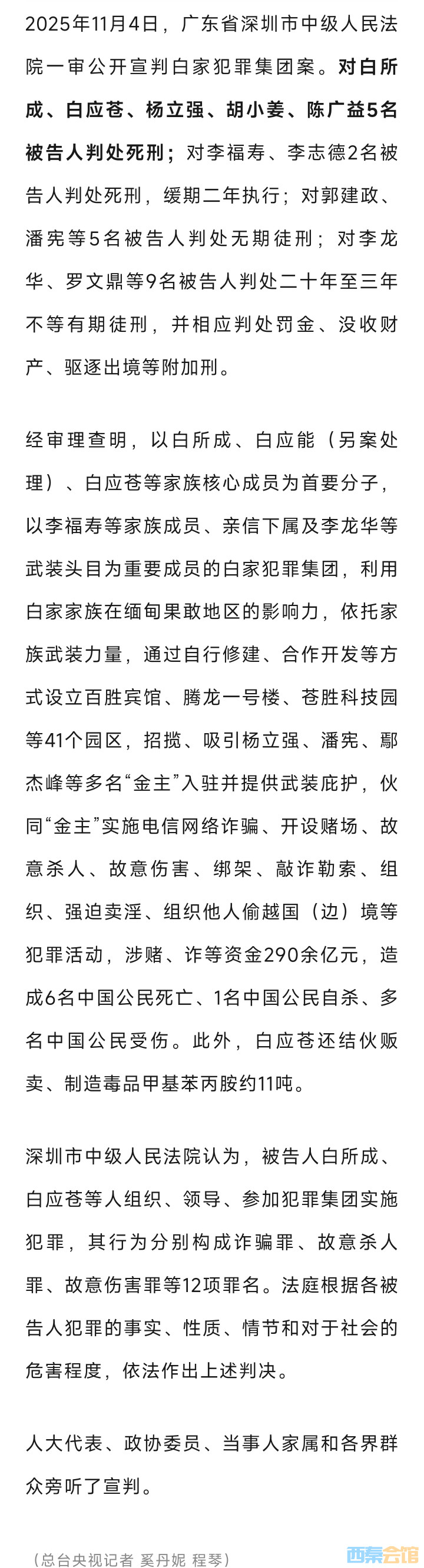 白家犯罪集团案一审宣判 白所成等5人被判死刑