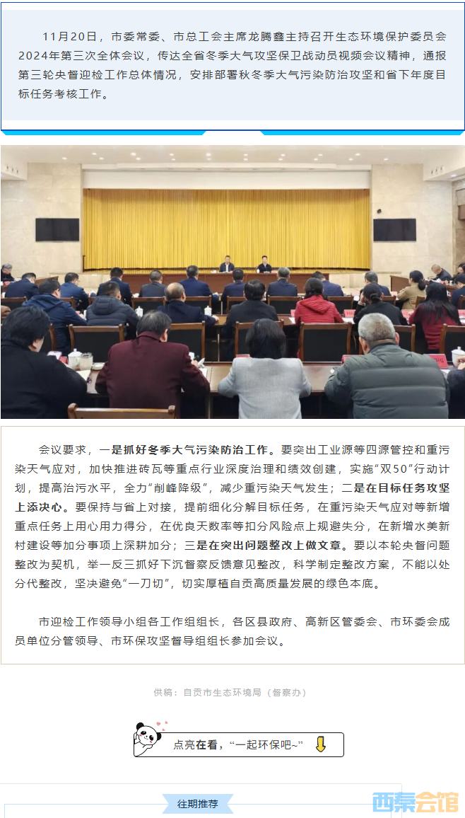 自贡市召开生态环境保护委员会2024年第三次全体会议