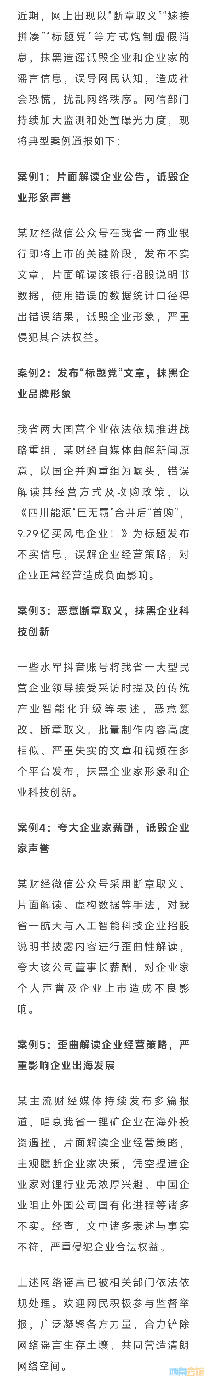 四川公布5起涉企网络谣言典型案例