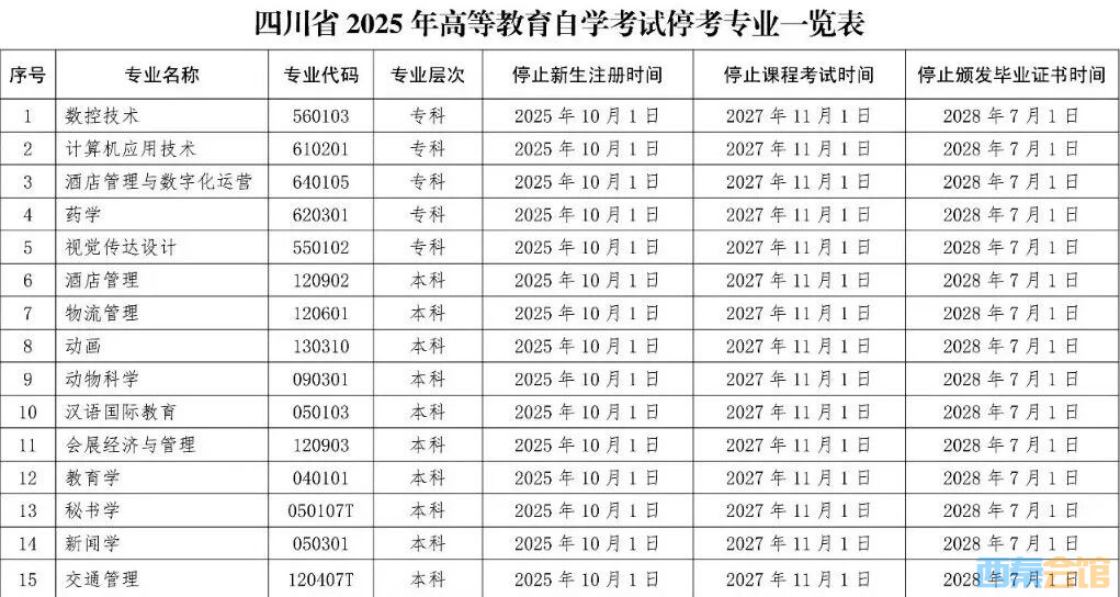 四川省教育考试院发布公告,这15个专业停考→