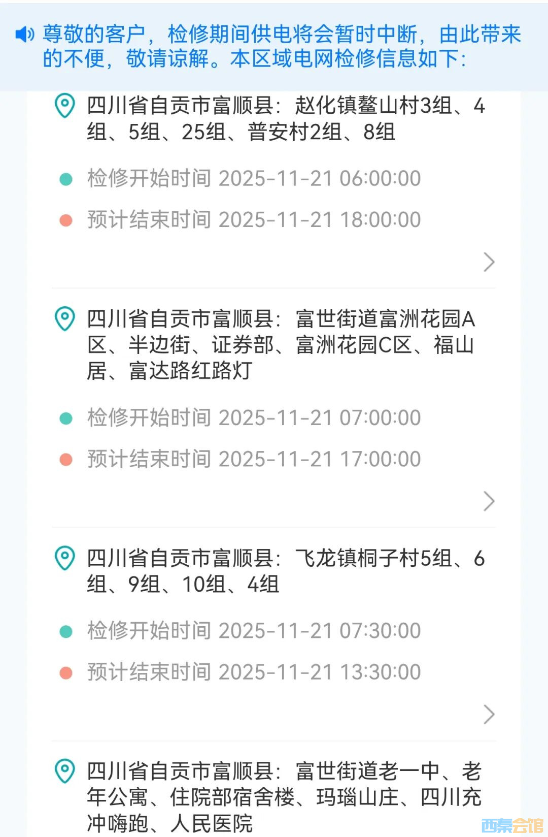 11月21日起,富顺供电的这些地方检修或将停电,看看有你家吗?