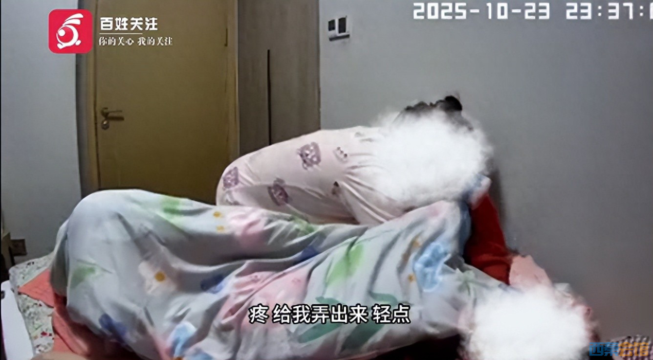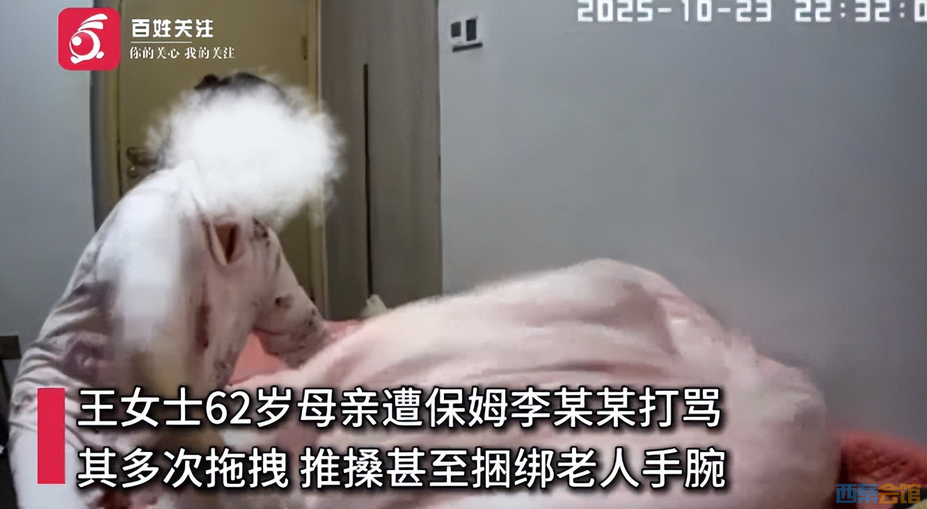 监控画面显示,保姆在10月23日至24日期间多次实施暴力行为:将老人躯体粗暴拖拽至床边,用绳索捆绑手腕限制活动;护理时故意用被子紧捂老人面部;同时伴随“你脏死了臭死了”“不想听你说话”等辱骂。