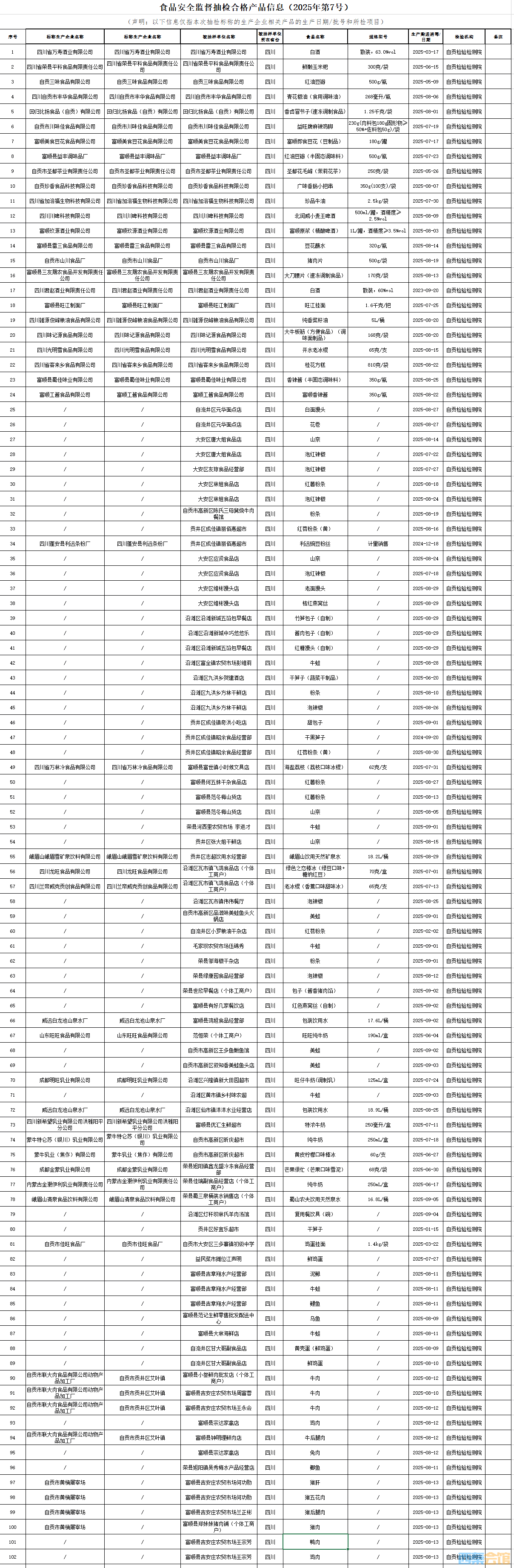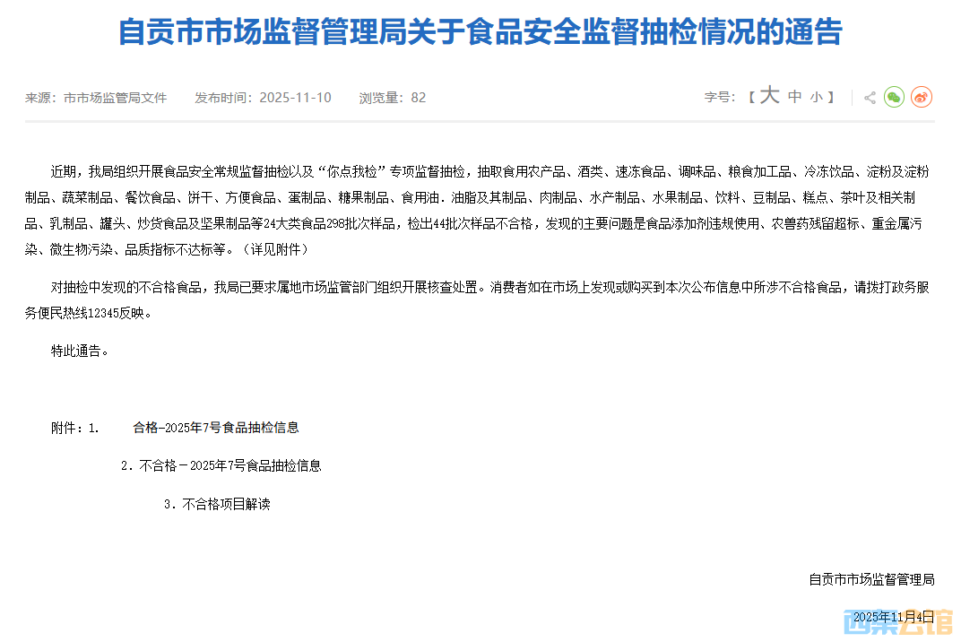 自贡市市场监督管理局关于食品安全监督抽检情况的通告