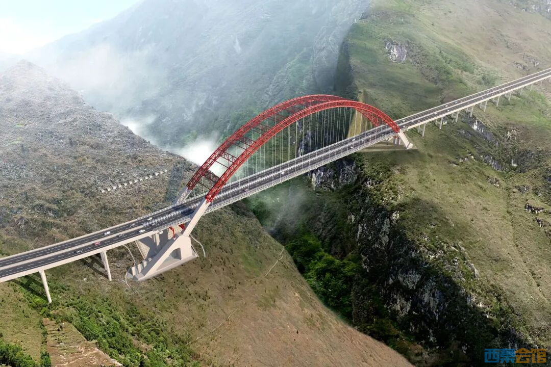 为克服大纵深峡谷地形带来的施工挑战,建设团队成功探索形成《复杂地形条件下标准化全装配钢平台快速搭设施工工法》和《山区陡坡地形大尺寸重型构件斜轨运输施工工法》2项创新工法,有效解决了陡坡作业条件下重型构件运输与安装难题,为整体工程的质量把控与进度控制提供了关键技术支撑。面对复杂地形与地质条件的严峻挑战,建设团队以国内首创的非对称高低主拱设计和全装配化施工工艺的全面应用这两项核心技术突破实现了高效建造。