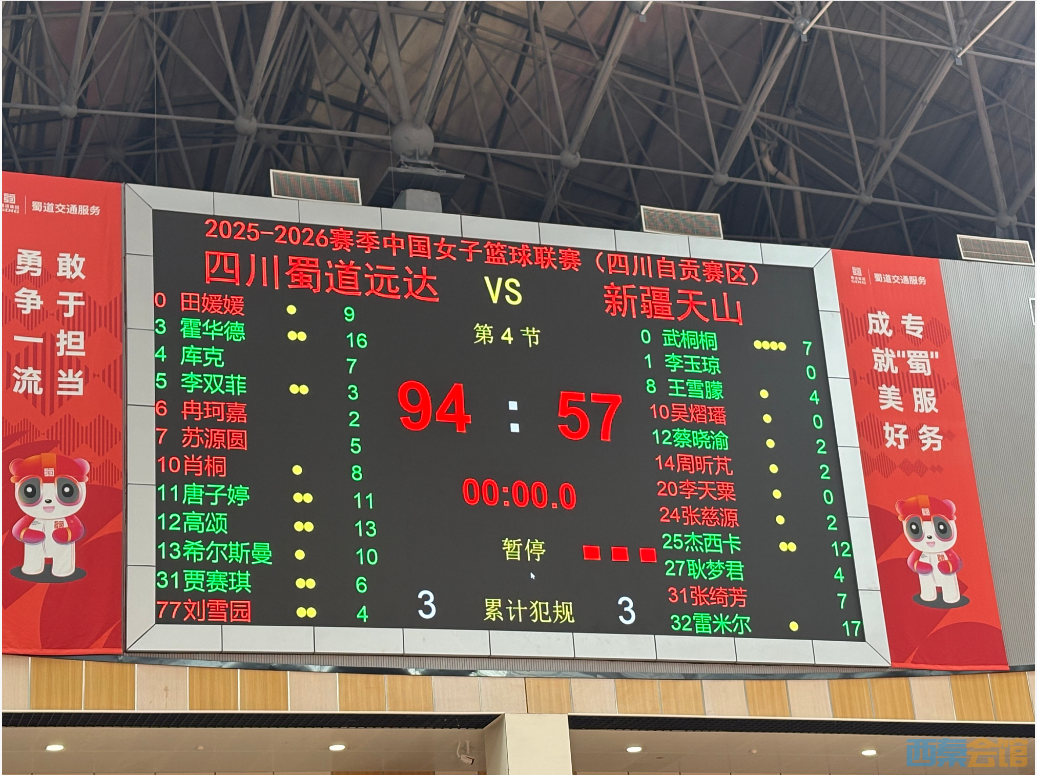 2025-2026赛季WCBA联赛常规赛第二轮焦点战四川蜀道远达vs新疆天山于12月5日晚在富顺县文体中心篮球馆打响。坐镇主场的四川蜀道远达女篮凭借强势开局与全场压制,以94比57大胜新疆天山女篮,延续连胜势头,为家乡球迷献上一场酣畅淋漓的胜利。