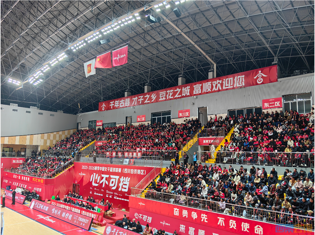 本场比赛,富顺县文体中心篮球馆座无虚席,球迷们身着红色助威服,用震耳欲聋的呐喊声为四川队加油。“四川雄起!远达必胜!”的口号贯穿全场,每当球队完成精彩配合或命中三分,看台便掀起声浪热潮。