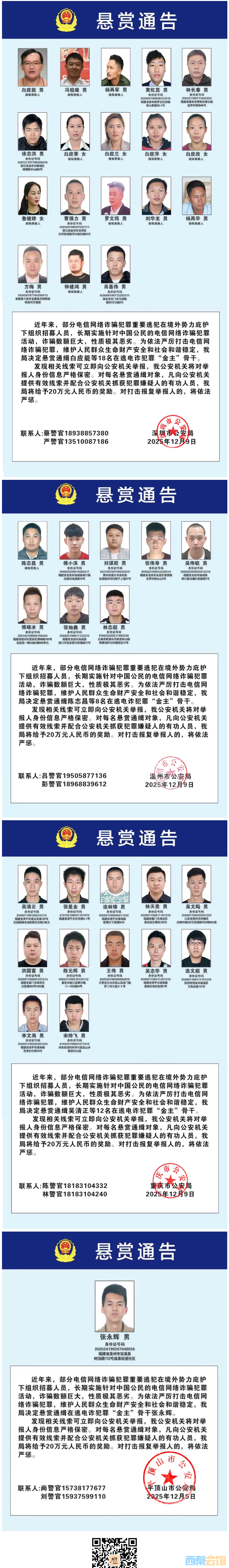为依法严厉打击跨境电信网络诈骗犯罪,切实维护人民群众财产安全和合法权益,近日,公安部发布通缉令,公开通缉100名电信网络诈骗犯罪在逃金主和骨干,其中包括吴启平、吴清正、傅小滨、欧长华等缅北“四大家族”犯罪集团重要逃犯。