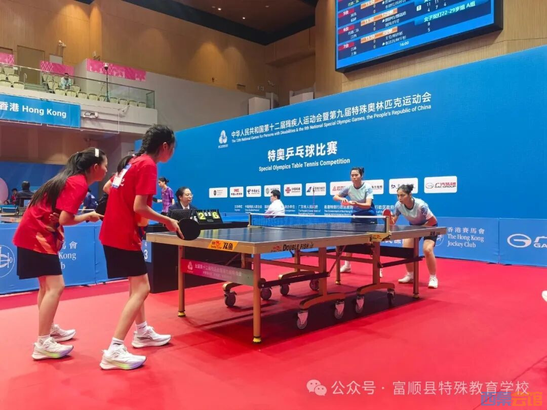 11月30日至12月9日,中华人民共和国第十二届残疾人运动会暨第九届特殊奥林匹克运动会特奥乒乓球比赛在香港举行,富顺县特殊教育学校乒乓球队代表四川省出征,特奥运动员们以顽强拼搏的精神和默契的团队配合,从全国强手如林的参赛选手中脱颖而出,最终取得1金5银2铜的优异成绩,创造了学校特奥运动史上的最佳战绩。
