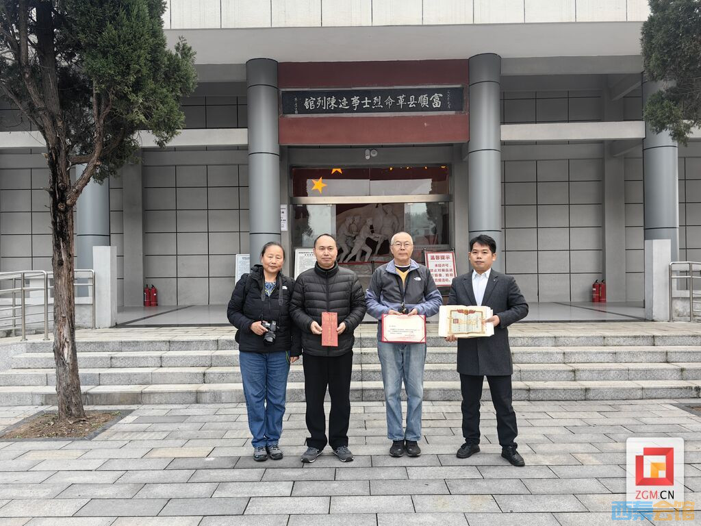 一张革命军人牺牲纪念证、一封烈士家属慰问信……12月12日,富顺籍烈士王一的外侄梁一民专程从北京赶到富顺县烈士陵园,捐赠了与王一烈士相关的珍贵史料。每一件遗物都承载着烈士的光辉足迹,也寄托着家属对传承红色精神的深切期望。