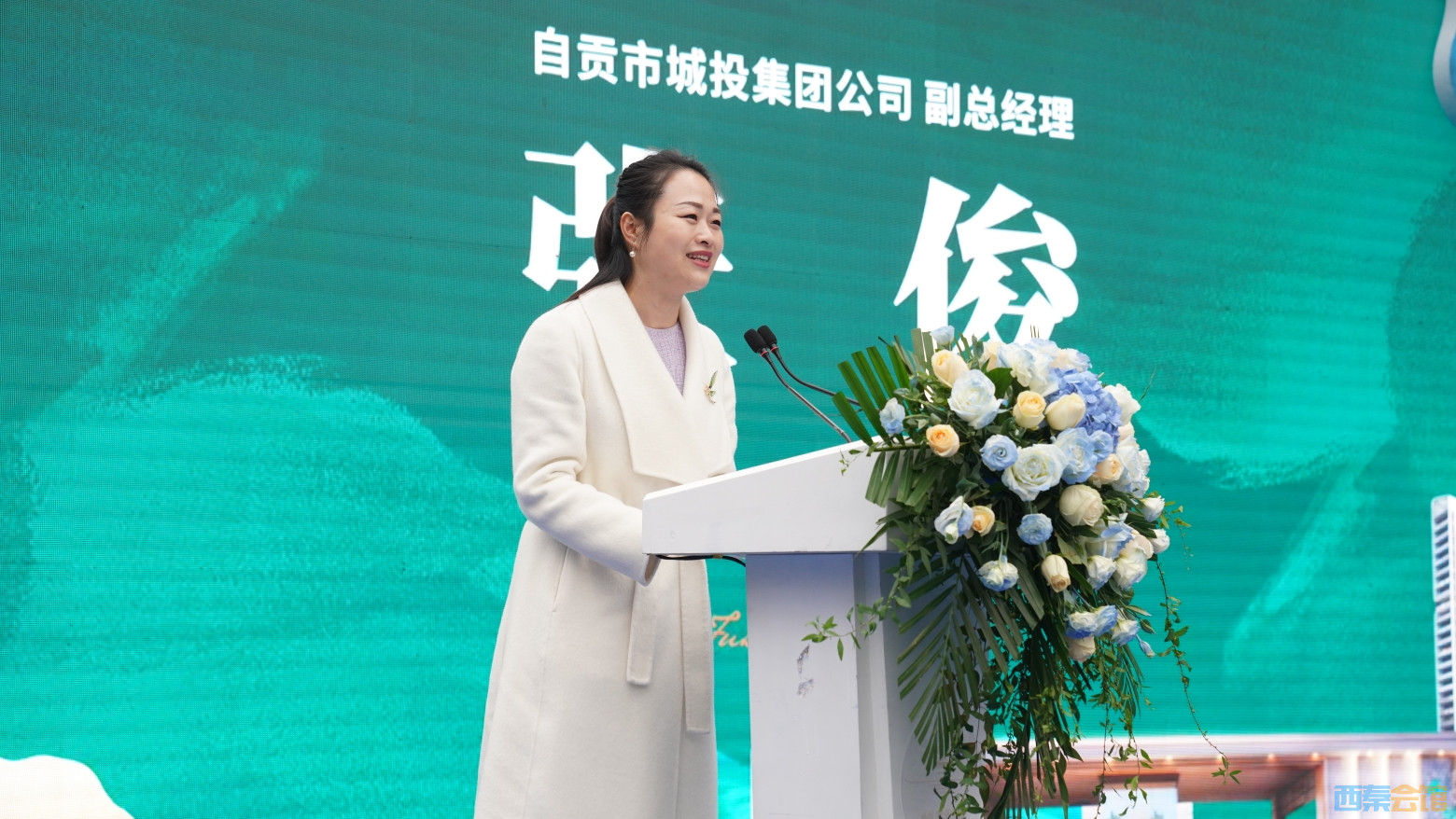 随后,自贡市城投集团公司党委委员、副总经理、鑫景城公司执行董事张俊登台,为现场嘉宾详细介绍城投·釜溪印象项目。张俊从项目规划理念、区位优势、产品设计等方面进行了全面解读,重点强调了项目的硬核优势——自贡首创5梯6户顶配设计。她指出,普通楼盘多为2梯6户配置,高峰时段等电梯堪比“抢车位”,极大影响居住舒适度;而城投·釜溪印象平均每户近1部电梯,能彻底解决出行等待难题,为业主带来便捷高效的居住体验。同时,项目遵循新规打造超高得房率,让业主花同样的钱享受更大居住空间,且物业成本更省,如此高性价比的产品在自贡市场十分罕见,引发现场嘉宾的广泛关注与期待。