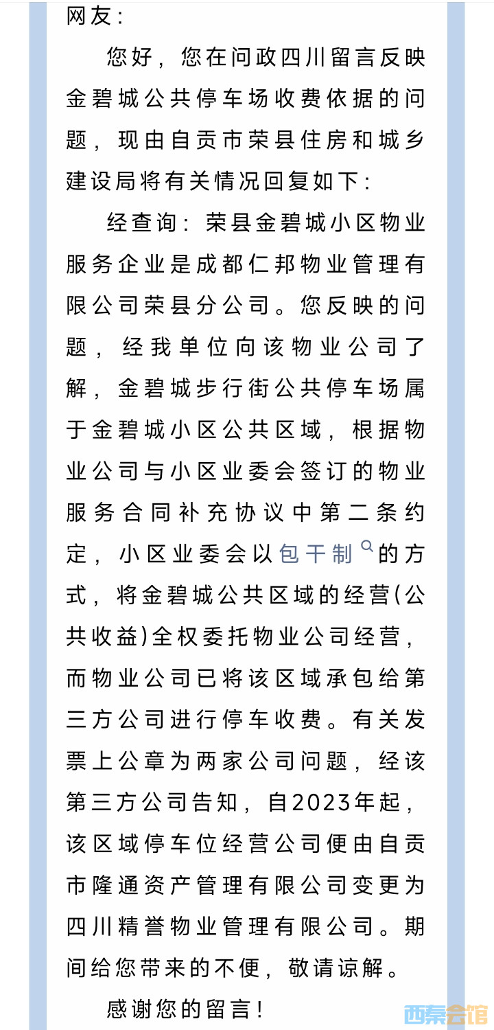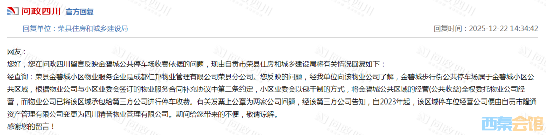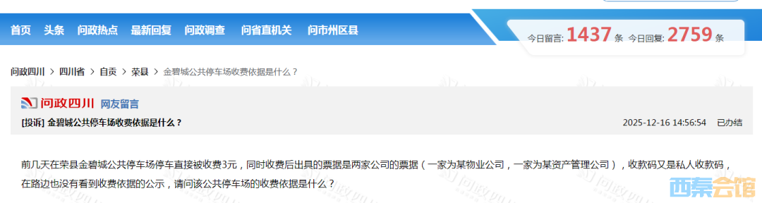 荣县公共停车场收费的依据是什么?官方回复——