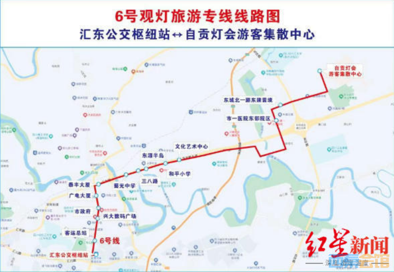 4条公交观灯专线覆盖汇东、贡井、方特、高铁站四大核心枢纽。1月24日正式开行,1月21日试展和1月23日开幕式这两天也将运行,首班车发车时间为开园前60分钟,末班车为关灯后30分钟。