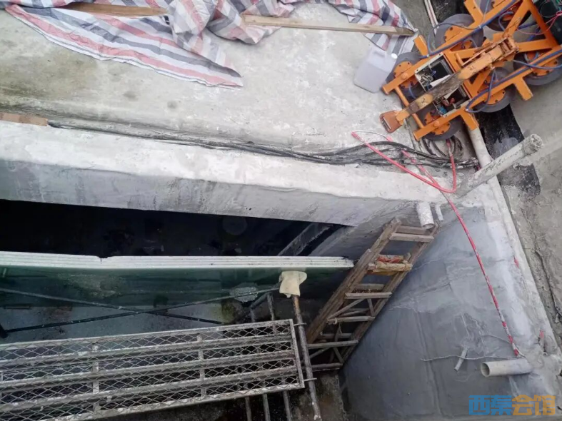 在小李印象中,将那块大玻璃放到坑里,就花了不少时间,“仅因为吸盘一边工作、一边不工作,就修了一回,花了半小时左右;后来一个工人遥控,一个工人用脚把玻璃踩直,其余人用方木撬着,才慢慢把玻璃放下去”。