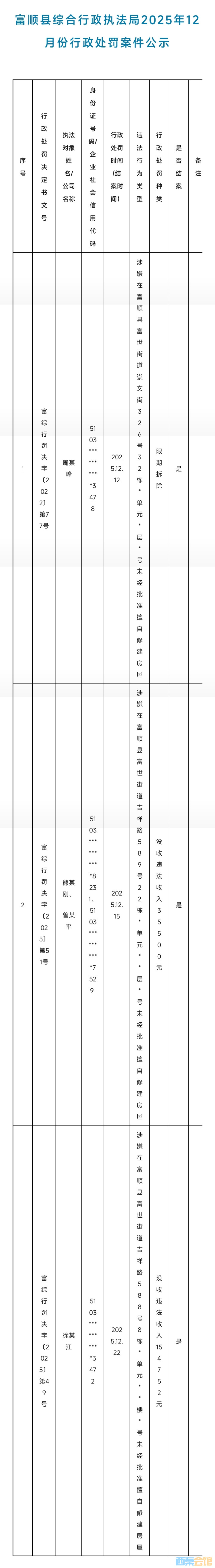 15万巨额罚款!富顺几处违建……