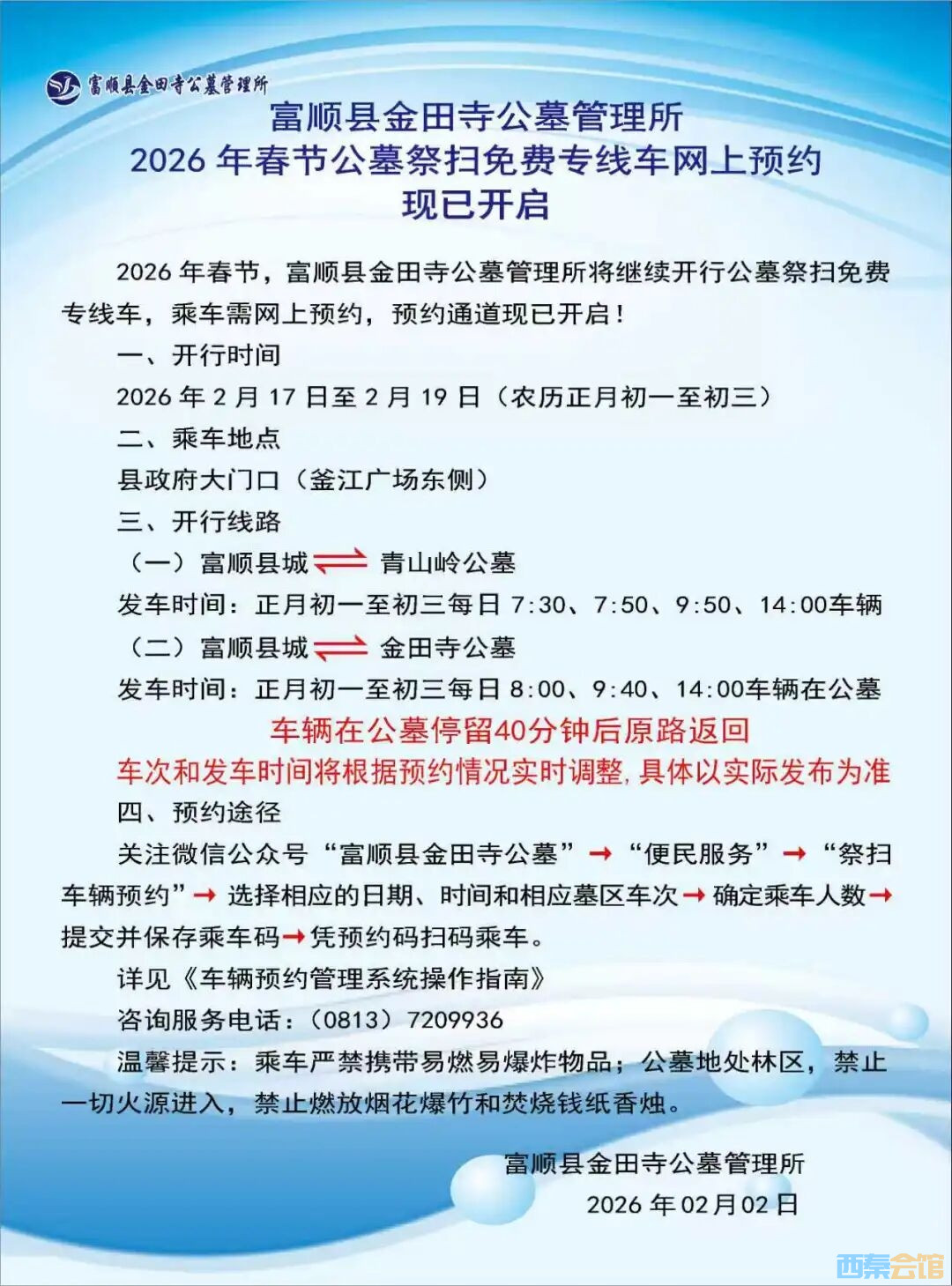 富顺县2026年春节公墓祭扫免费专线车网上预约现已开启,详情——
